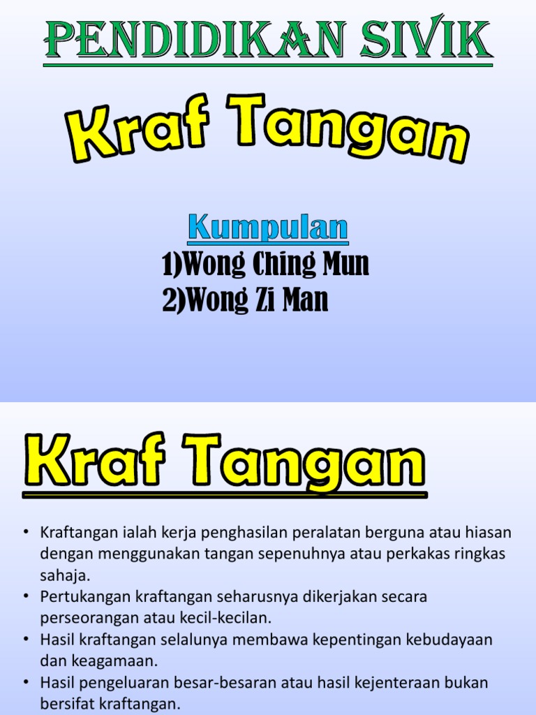Hasil seni kraftangan masyarakat Malaysia perlu dikekalkan kerana keunikannya. Hasil kraftangan selalunya membawa kepentingan kebudayaan danatau keagamaanSarawak misalnya menghasilkan kraftangan yang unik hasil daripada. 10 IDEA KRAF MUDAH UNTUK DILAKUKAN DI RUMAH.